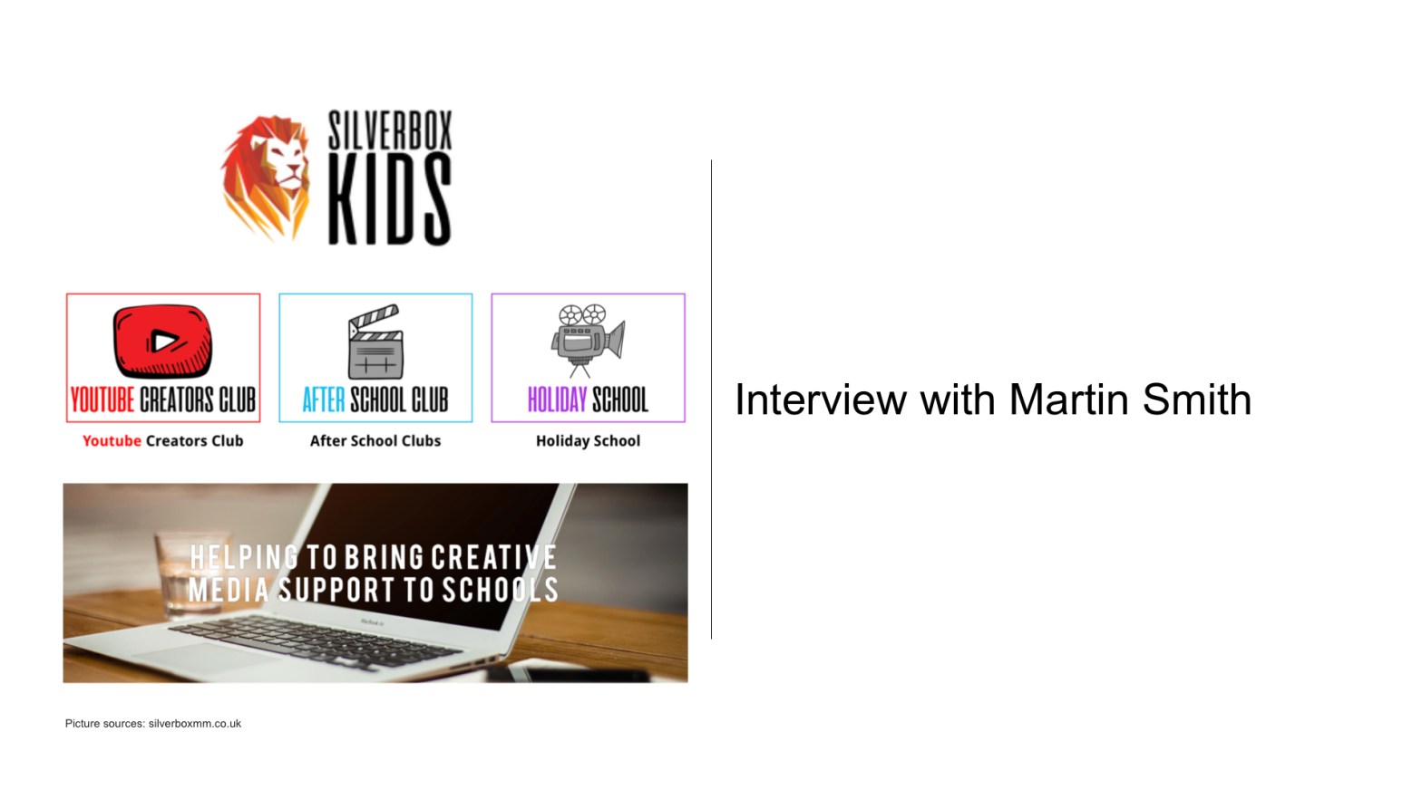 Hi Martin, great to hear from you today! Could you tell us about the work you do with Silverbox Multimedia and the way you enable children to express themselves creatively with filmmaking? I know you also aim to help them engage with social media in a safe and positive way. How do you do that?