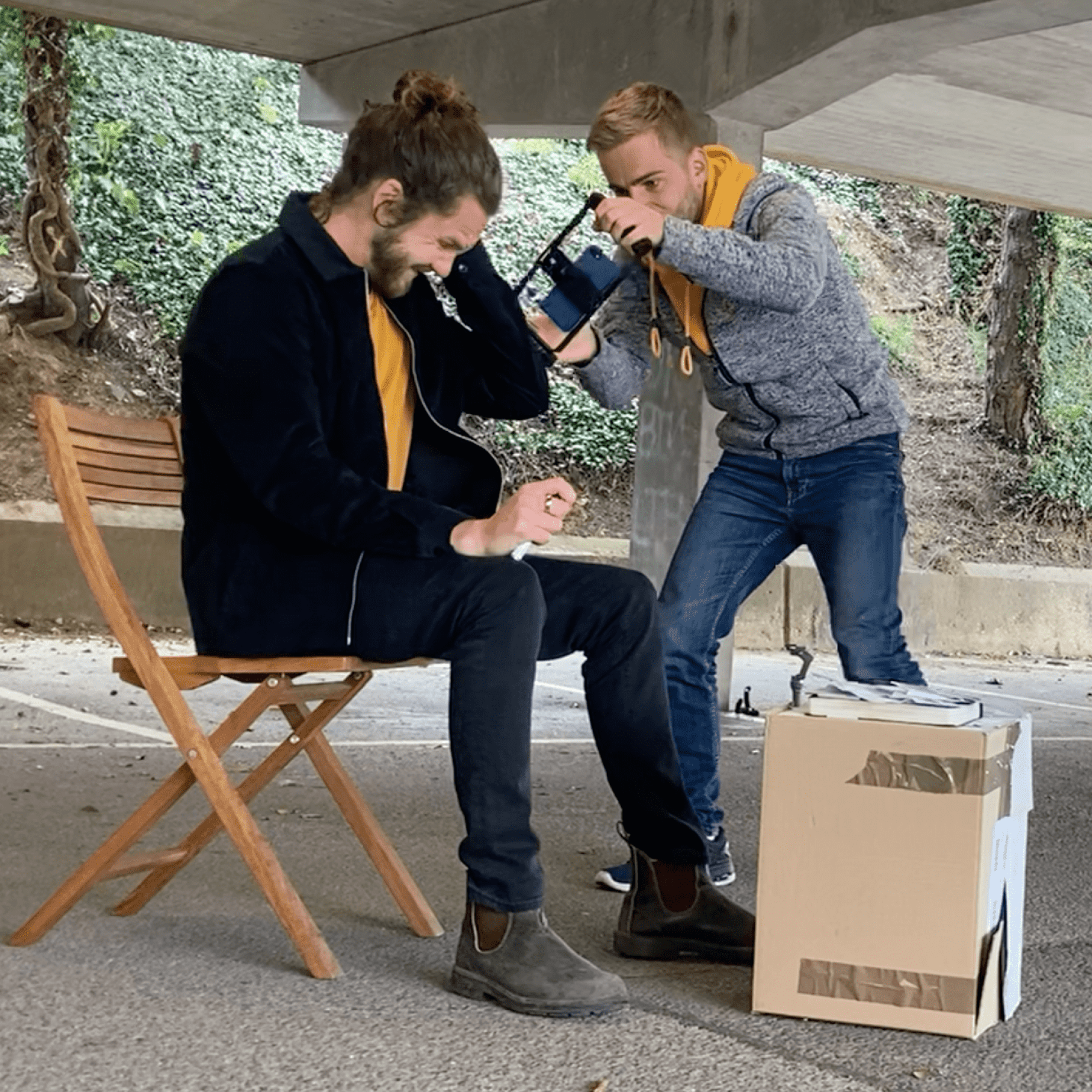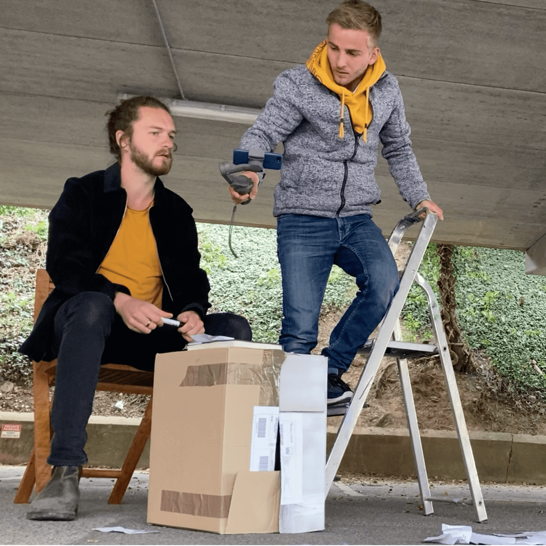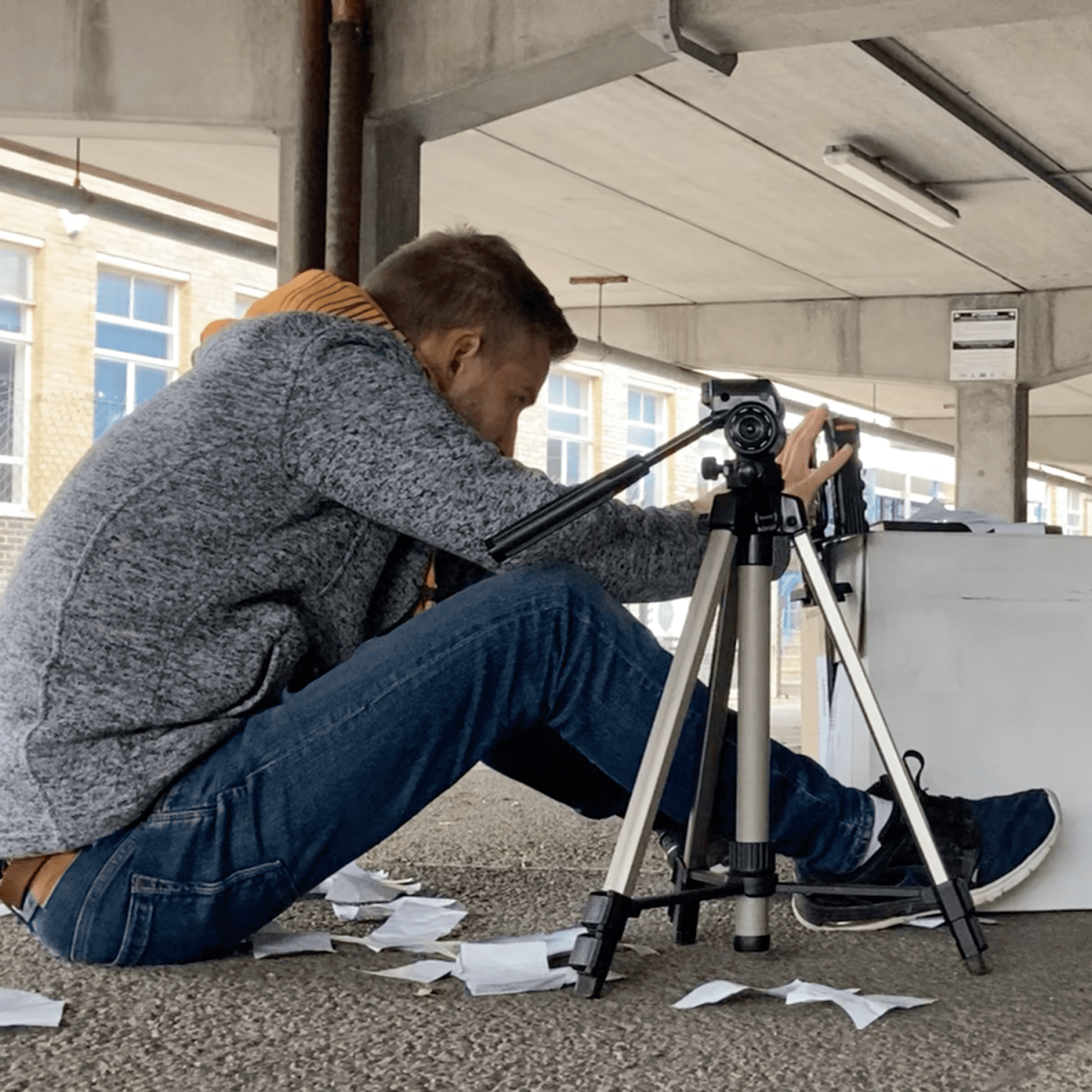 If you want to shoot in a parking garage you have to pick the right time of day… but gladly, we only had a few cars wanting to get past! In the following I want to provide some interest into the creative process for this short film. Those inights, I hope, will give you ideas for expressing creatively what is in you. You might not be trained in a certain field, but simply have a go and explore!